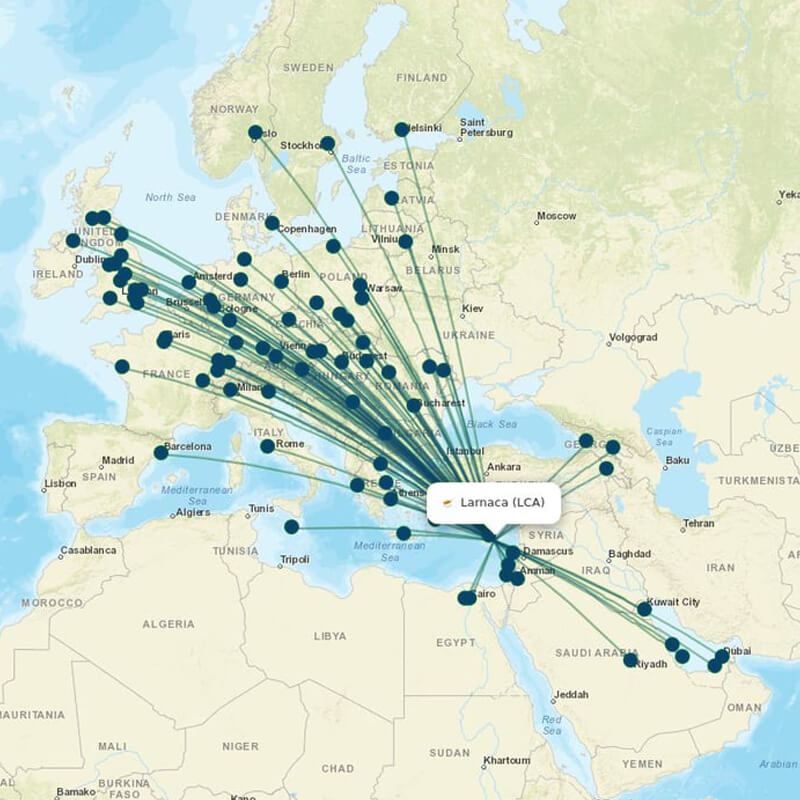 - Copenhagen CPH - Larnaca LCA, 1 stopover (Austrian Airlines)